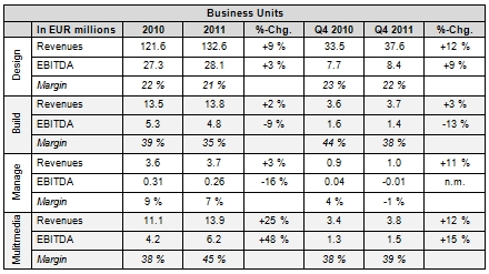 Provided the underlying conditions remain largely stable, Nemetschek is again planning a clear increase in revenue of 10 percent to approximately 180 million euros for 2012. The managing board expects the 2012 EBITDA margin to remain at a level similar to that in 2011.