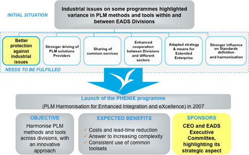 Given the historic levels of investment in PLM by companies in many industries, it should be well known by now that a PLM programme, just like any other major business-related initiative, must be executed and supported by a well-defined and repeatable methodology—a robust methodology that engages all levels of the organisation from the CEO down to the end users—and ensures the institutionalisation of the processes, standards, and enabling technologies being implemented. Unfortunately, the need for a strong methodology is often lost on many organisations, but not EADS when it came to its PHENIX (PLM Harmonisation for ENhanced Integration and eXcellence) programme. Launched in 2007, the goal of the PHENIX programme was to harmonise the group’s PLM tools, processes, and associated standards.